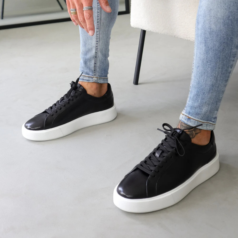 Complete and Compete. La sneaker incontournable en cuir noir qui complète tous vos looks et attire tous les regards. Son design épuré s’associe à une semelle extérieure résistante et une semelle intérieure en mousse à mémoire de forme pour vous offrir confiance et confort à chaque pas.